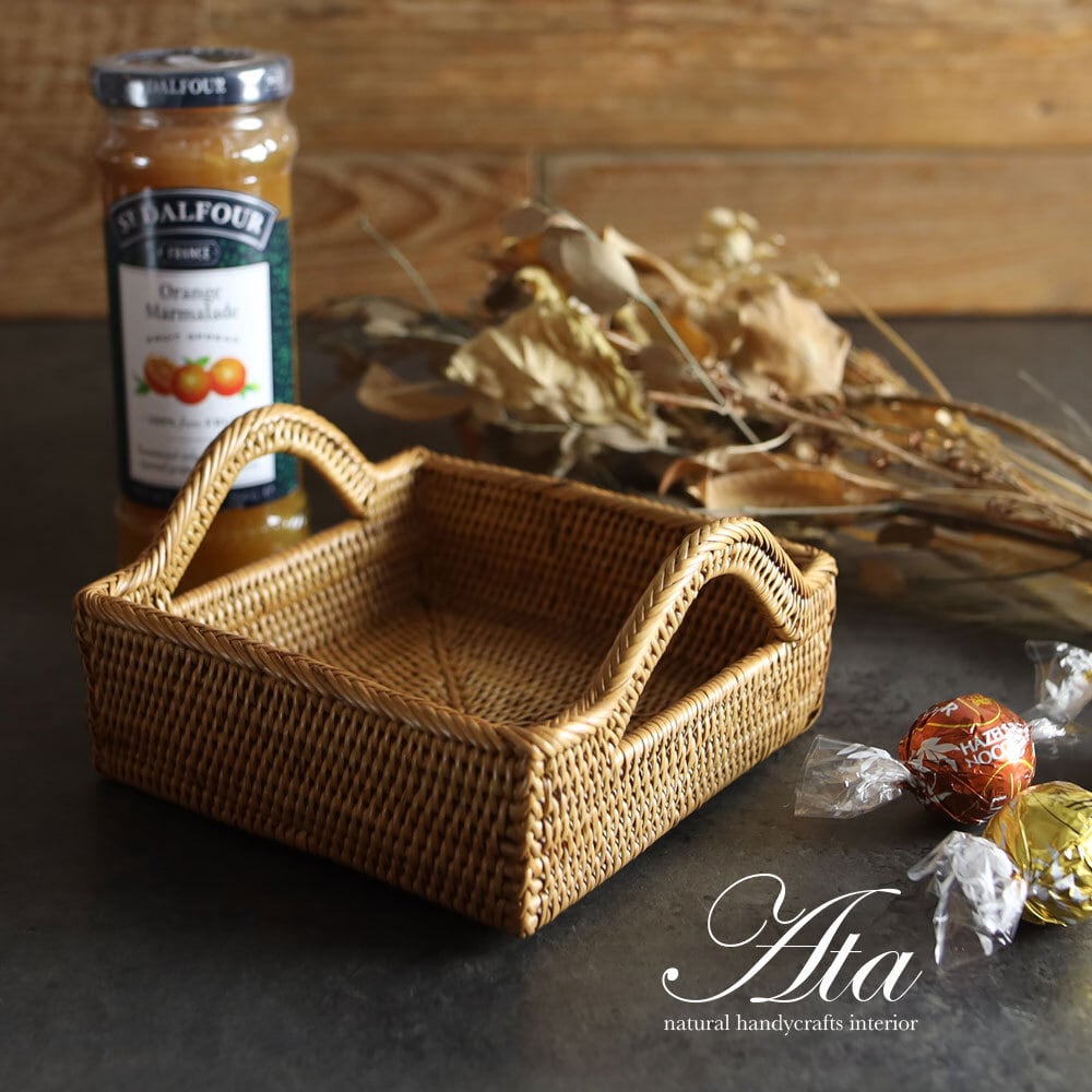 葉を取り、茎の部分を乾燥させ、丁寧に編み込んだものが、アタ製品となります。アタ製品は、”100年の耐久性を持つ”と言われているくらい丈夫なので、永くご使用いただけます。